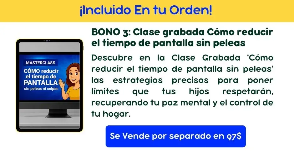 BONO #3: Clase grabada Cómo reducir el tiempo de pantalla sin peleas. Valorado en $27
